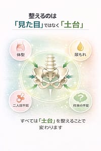 - 体型・尿漏れ・将来の不安まで含めてケアする