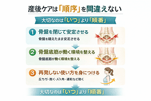 - ●「期間」よりも「順序」: 産後6ヶ月という期限に縛られる必要はありません。重要なのは、骨盤を「閉じて安定させる」という土台作りから始める、解剖学に基づいた正しい順序です